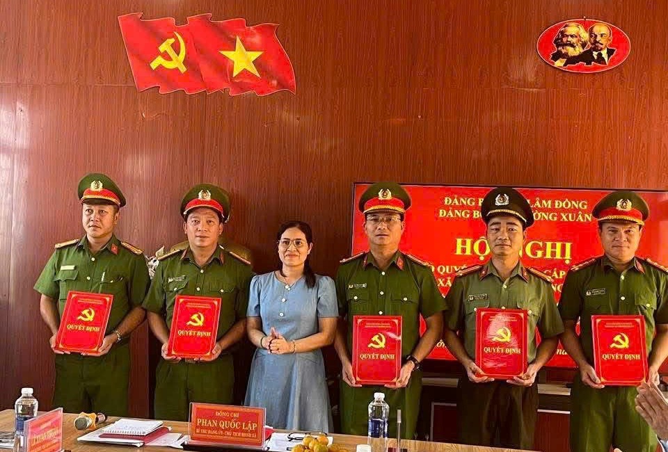 Đ/c Thượng tá Nguyễn Xuân Đức, Bí thư Đảng ủy, Trưởng Công an xã trao Quyết định thành lập các Chi bộ trực thuộc