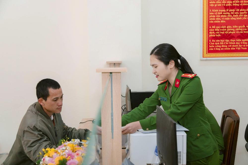 Cùng với đó, tại trụ sở tiếp dân, các quầy tiếp nhận hồ sơ được bố trí gọn gàng cùng lực lượng thanh niên hỗ trợ người dân thực hiện các thủ tục hành chính như đăng ký hộ khẩu thường trú và xử lý các vi phạm hành chính. Hệ thống công nghệ thông tin được nâng cấp, xử lý các thủ tục hành chính trực tuyến liên thông với cấp tỉnh, giúp rút ngắn thời gian chờ đợi của người dân.