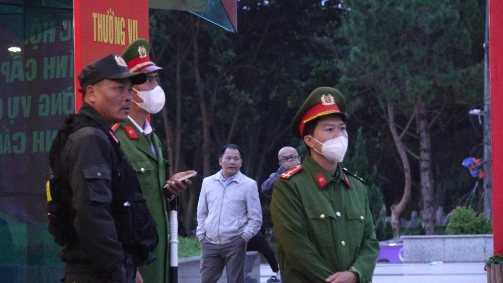 Lực lượng Công an phường Xuân Hương - Đà Lạt ứng trực đảm bảo ANTT tại Quảng trường Lâm Viên