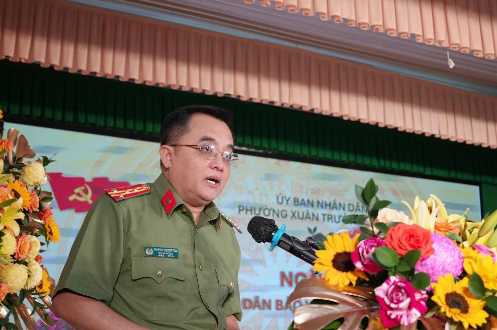 Phát biểu tại ngày hội, Đại tá Huỳnh Ngọc Liêm - Phó Giám đốc Công an tỉnh, Thường trực Ban Chỉ đạo phong trào Toàn dân bảo vệ An ninh Tổ quốc tỉnh Lâm Đồng đánh phong trào Toàn dân bảo vệ An ninh Tổ quốc tại phường Xuân Trường - Đà Lạt thời gian qua đã được nhiều kết quả đáng tự hào, thực sự đi vào đời sống. Dưới sự lãnh đạo của cấp ủy, chính quyền và sự hướng dẫn của lực lượng Công an, phường đã duy trì tình hình an ninh trật tự ổn định, tạo môi trường thuận lợi cho phát triển kinh tế, xã hội. Nhiều văn bản chỉ đạo được ban hành, nhiều chương trình tuyên truyền được tổ chức giúp cán bộ, đảng viên và Nhân dân nhận thức sâu sắc về vai trò của mình trong phong trào này. Những thành tích nổi bật của phường đã được Bộ Công an ghi nhận bằng Bằng khen, Ủy ban Nhân dân tỉnh Lâm Đồng tặng Cờ thi đua, khẳng định vị thế của một địa phương kiểu mẫu trong công tác bảo vệ an ninh Tổ quốc. Đồng chí Phó Giám đốc Công an tỉnh nhấn mạnh, tỉnh Lâm Đồng với vị trí chiến lược và tiềm năng kinh tế lớn càng đòi hỏi sự nỗ lực không ngừng để giữ vững sự ổn định. An ninh trật tự không chỉ là nền tảng mà còn là điều kiện tiên quyết để thúc đẩy phát triển kinh tế, xã hội tạo nên một Đà Lạt văn minh, thịnh vượng. Để phong đi vào chiều sâu, trong thờ gian tới, cấp ủy, chính quyền phường Xuân Trường - Đà Lạt cần tiếp tục đổi mới tuyên truyền, vận động người dân tham gia phòng chống tội phạm, nhân rộng mô hình tự quản hiệu quả như tổ an ninh nhân dân, camera an ninh. Đồng thời, củng cố hệ thống chính trị cơ sở, xây dựng lực lượng Công an, dân quân vững mạnh. Bên cạnh đó, phát huy vai trò Mặt trận Tổ quốc và đoàn thể trong tập hợp sức mạnh của quần chúng nhân dân. Đồng chí Phó Giam đốc cũng kêu gọi cán bộ, Nhân dân phường Xuân Trường - Đà Lạt tiếp tục đoàn kết, xây dựng khu dân cư an toàn, văn minh, đồng thời cam kết Công an tỉnh sẽ luôn đồng hành cùng địa phương.