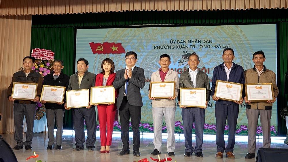 Lãnh đạo phường Xuân Trường - Đà Lạt trao Giấy khen cho các cá nhân có thành tích xuất sắc trong phong trào Toàn dân bảo vệ ANTQ
