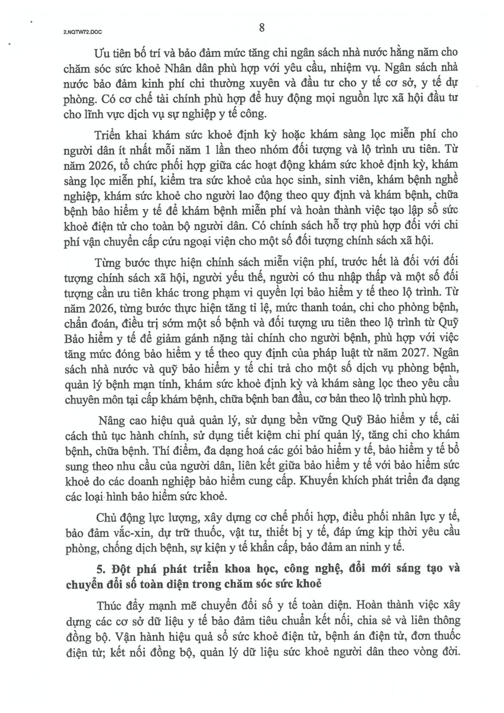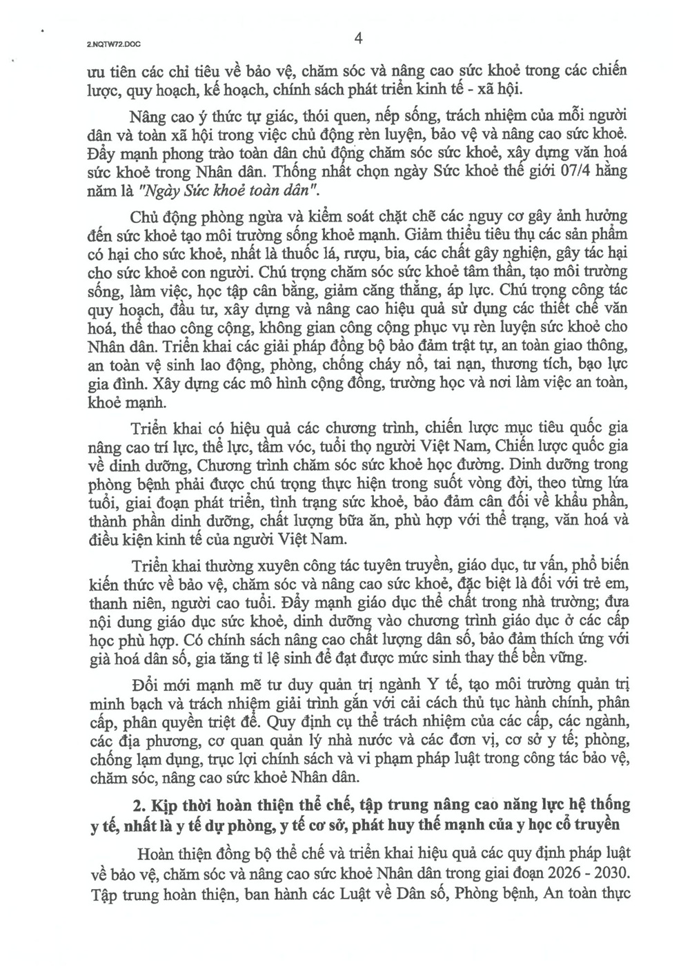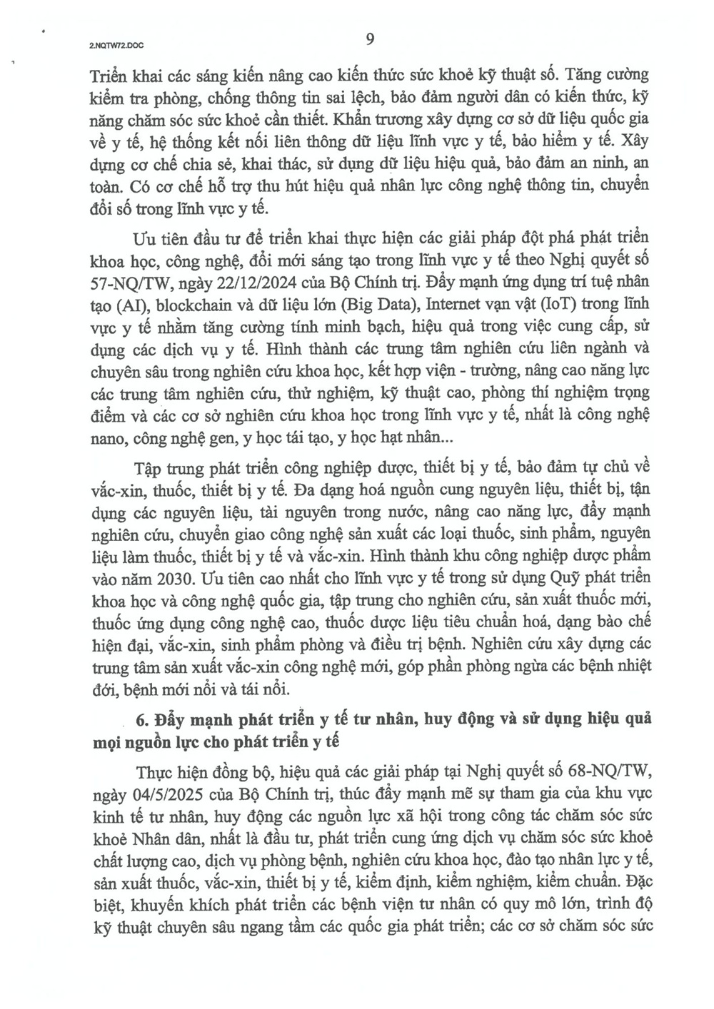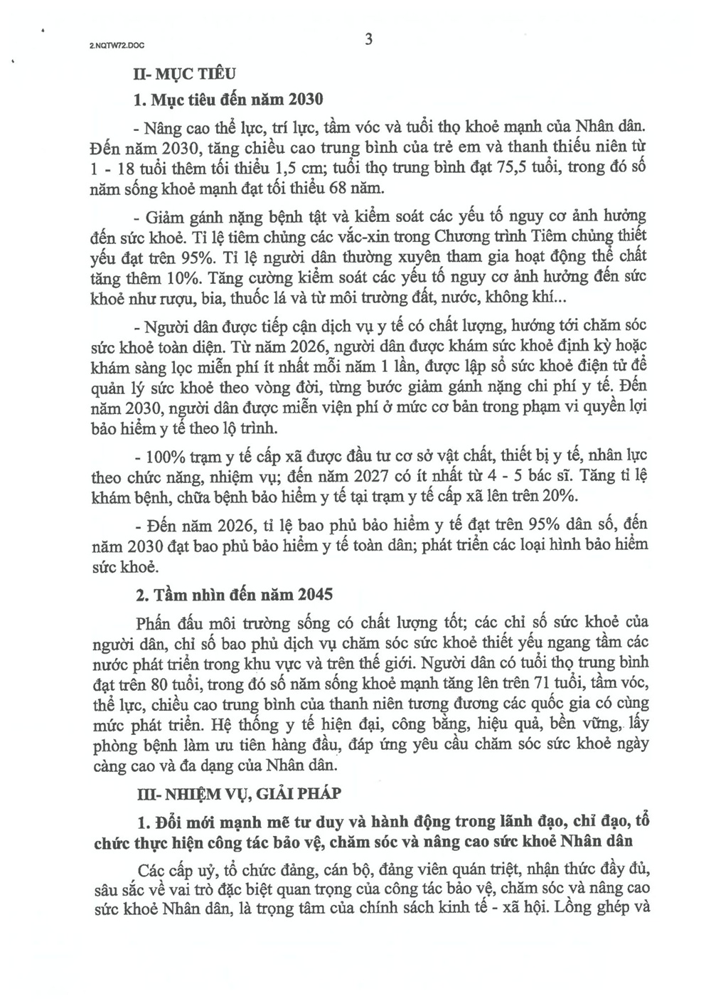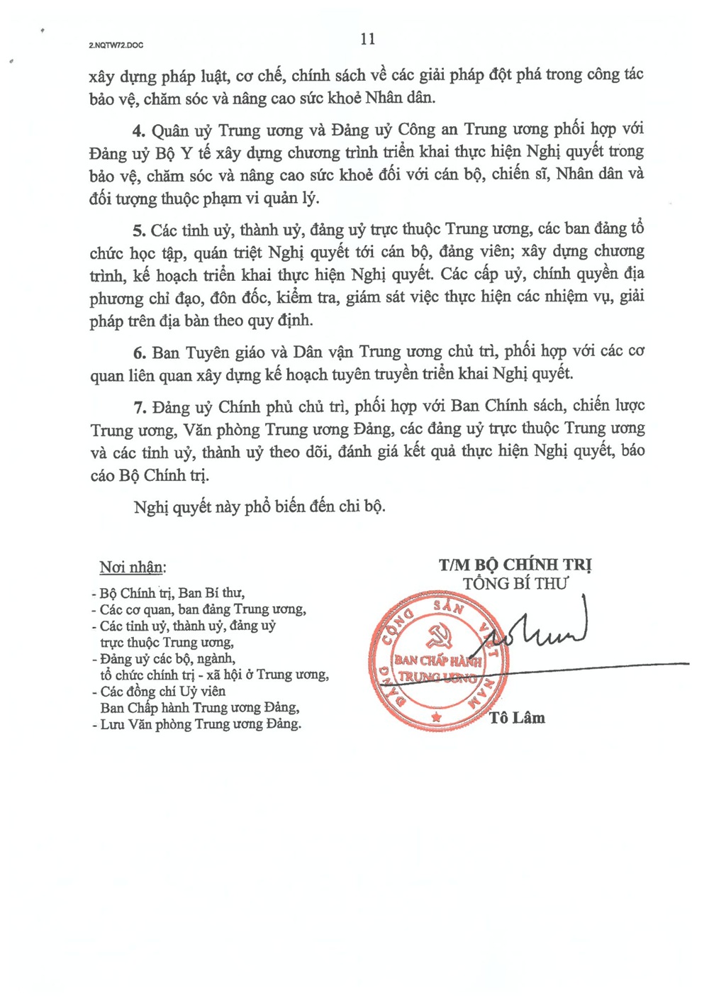 Thông tin chuyên đềChính trị - Xây dựng Đảng Nghị quyết 72-NQ/TW của Bộ Chính trị về một số giải pháp đột phá, tăng cường bảo vệ, chăm sóc và nâng cao sức khỏe nhân dân Your browser does not support the audio element.   29/10/2025 13:55 |   42 |  Ngày 9/9/2025, thay mặt Bộ Chính trị, Tổng Bí thư Tô Lâm ký ban hành Nghị quyết số 72-NQ/TW “Về một số giải pháp đột phá, tăng cường bảo vệ, chăm sóc và nâng cao sức khỏe nhân dân”. TrangThông tin điện tử Công an tỉnh Lâm Đồng trân trọng giới thiệu toàn văn Nghị quyết 72-NQ/TW. Từ khóa Liên kết Nghị quyết số 72-NQ/TW