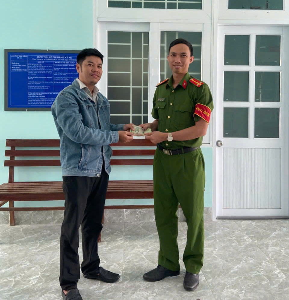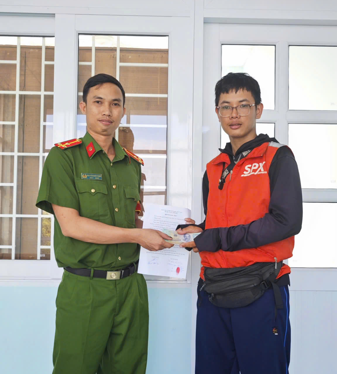 Đến khoảng 15h30 cùng ngày, anh Trần Nhật Hào (SN 2003) thường trú tại thôn Phú Sum, xã Tuyên Quang, tỉnh Lâm Đồng đến Công an xã Sông Lũy trình báo đánh rơi số tiền trên. Sau khi xác minh, Công an xã xác định đây chính là số tiền của anh Hào bị đánh rơi. Ngay sau đó, Công an xã Sông Lũy đã lập biên bản, tiến hành trao trả toàn bộ số tiền cho anh Hào.