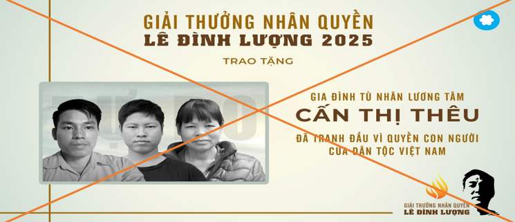 Tổ chức Việt Tân thông báo trao Giải thưởng Nhân quyền Lê Đình Lượng 2025 cho gia đình tù nhân Cấn Thị Thêu