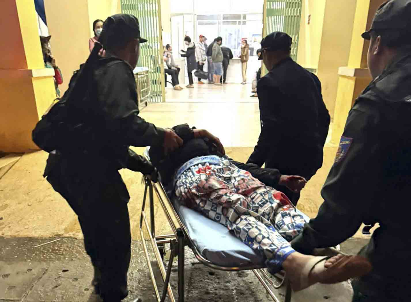 Cán bộ, chiến sỹ hỗ trợ người dân bị nạn đến bệnh viện