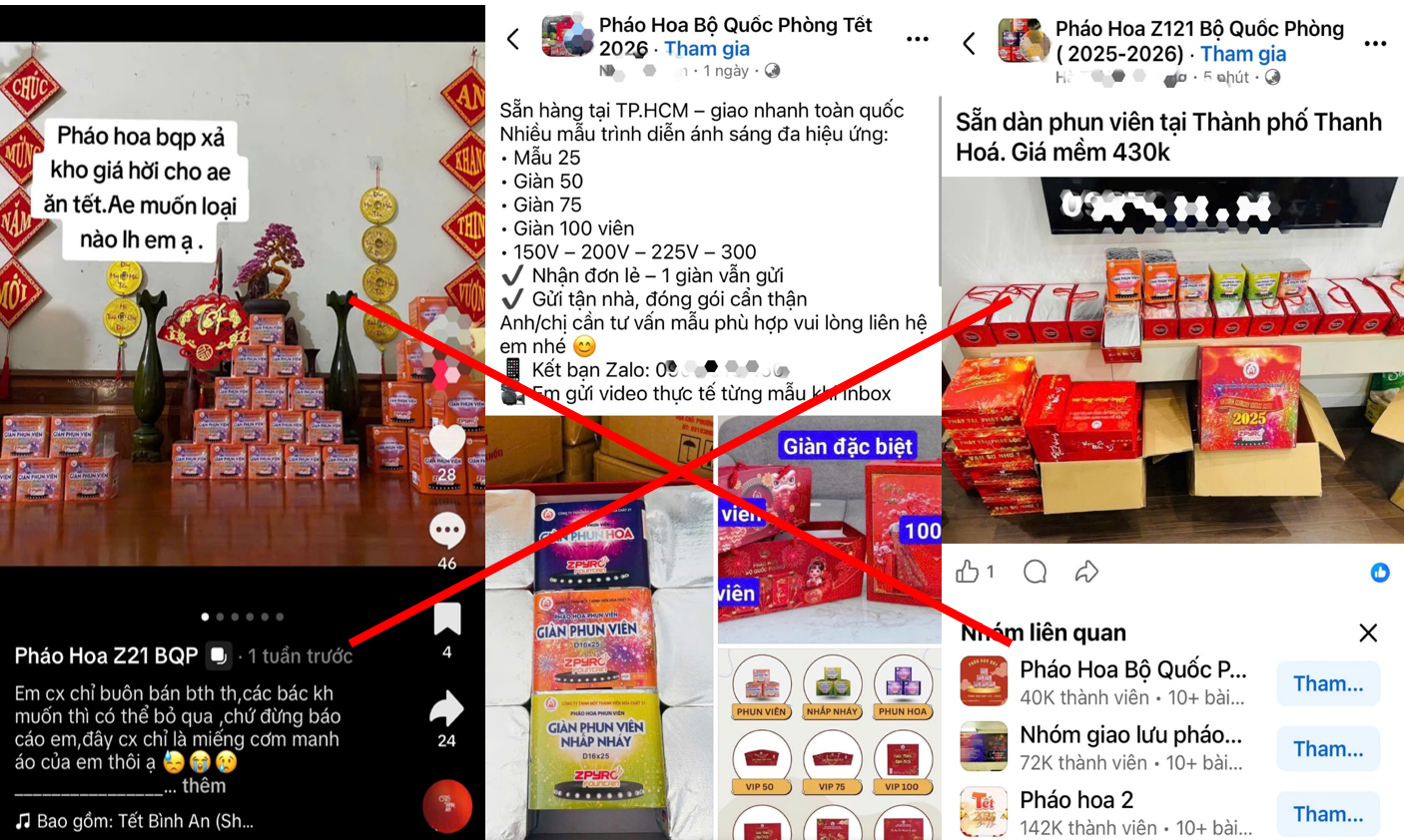 Pháo hoa do Nhà máy Z121 sản xuất được các cá nhân mua đi, bán lại trên mạng xã hội để kiếm lời