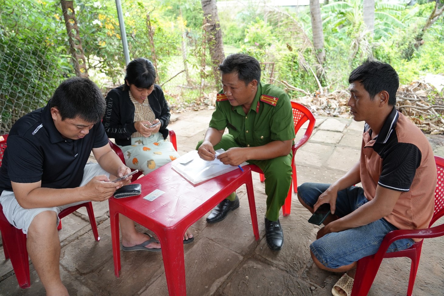 Công an xã Tuyên Quang đến khu dân cư để hướng dẫn nhân dân tự cập nhật các thông tin bằng điện thoại thông minh
