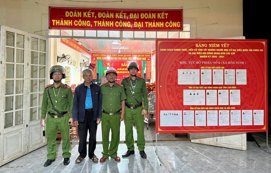 Với phương châm "Gần dân, sát dân", lực lượng Công an xã Hoà Ninh quyết tâm bảo đảm tuyệt đối an ninh, an toàn cho ngày bầu cử.