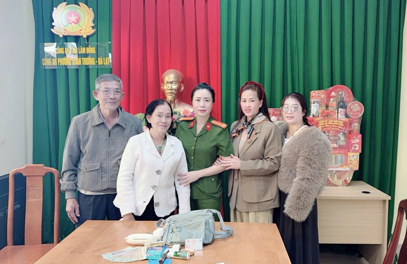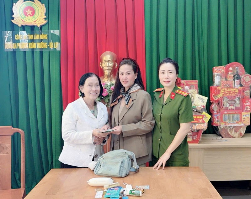 Sau khi xác minh chính xác, Công an phường Xuân Trường – Đà Lạt đã tổ chức cho người đánh mất tài sản và người nhặt được gặp nhau, tiến hành trao trả đầy đủ chiếc túi xách cùng số tiền 10.855.000 đồng, vật dụng và các giấy tờ liên quan. Nhận lại tài sản, vợ chồng hai bác xúc động gửi lời cảm ơn sâu sắc đến người phụ nữ nhặt được túi, đồng thời bày tỏ sự trân trọng trước tinh thần trách nhiệm, tận tụy của nữ cán bộ Công an phường.