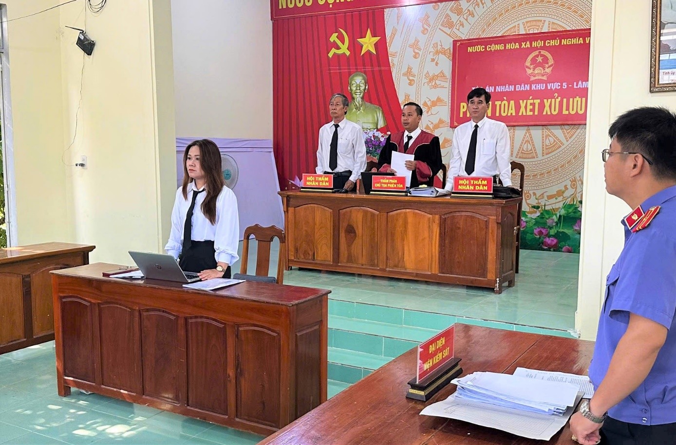 Chủ tọa phiên tòa là ông Nguyễn Văn Lập – Thẩm phán, cùng các Hội thẩm nhân dân là ông Cao Anh Tuấn và ông Trịnh Hữu Vĩnh; đại diện Viện Kiểm sát nhân dân Khu vực 5 là ông Nông Văn Quỳnh – Kiểm sát viên.