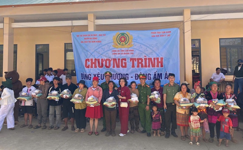 Trong chương trình, cán bộ, chiến sĩ Phân trại tạm giam Đắk R’lấp đã trao nhiều phần quà thiết thực gồm xe đạp, dụng cụ học tập, đồ chơi, quần áo, nhu yếu phẩm và tiền mặt đến các em học sinh tại điểm trường Đoàn Thị Điểm, điểm trường tiểu học và THCS Vừ A Dính; các hộ gia đình khó khăn và hỗ trợ “Gian hàng 0 đồng” của Công an xã Quảng Tân, với tổng trị giá quà tặng là 194.000.000 đồng. Những phần quà đã góp phần chia sẻ khó khăn trong cuộc sống, thể hiện tình cảm, sự quan tâm và trách nhiệm của lực lượng Công an cùng các tổ chức, cá nhân hảo tâm đối với cộng đồng.