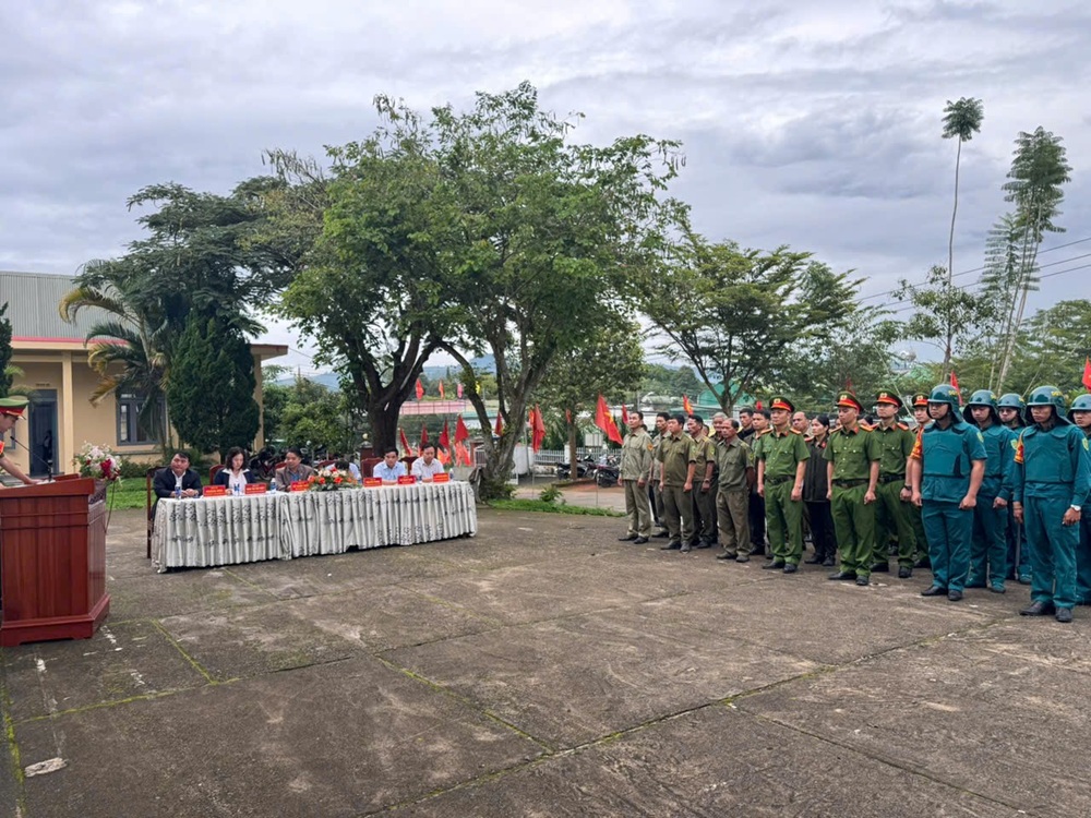 Phát biểu tại buổi lễ, đồng chí Hoàng Sơn – Bí thư Đảng ủy xã ghi nhận sự chủ động của Công an xã và các ngành chức năng trong công tác chuẩn bị cho mùa vụ năm nay; đồng thời đề nghị địa phương tiếp tục triển khai đồng bộ các biện pháp phòng ngừa, phát hiện, xử lý nghiêm các hành vi vi phạm pháp luật; bảo đảm tuyệt đối an toàn cho Nhân dân trong quá trình thu hoạch và tiêu thụ nông sản.
