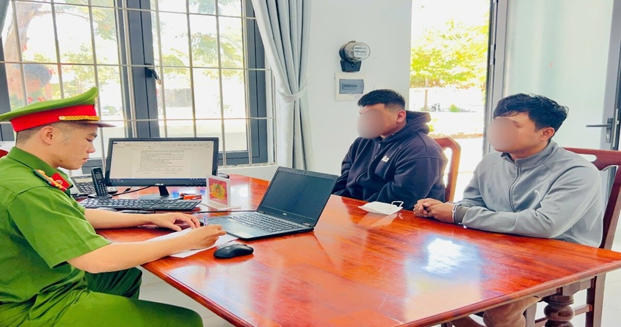 Hai đối tượng làm việc với cơ quan Công an phường La Gi