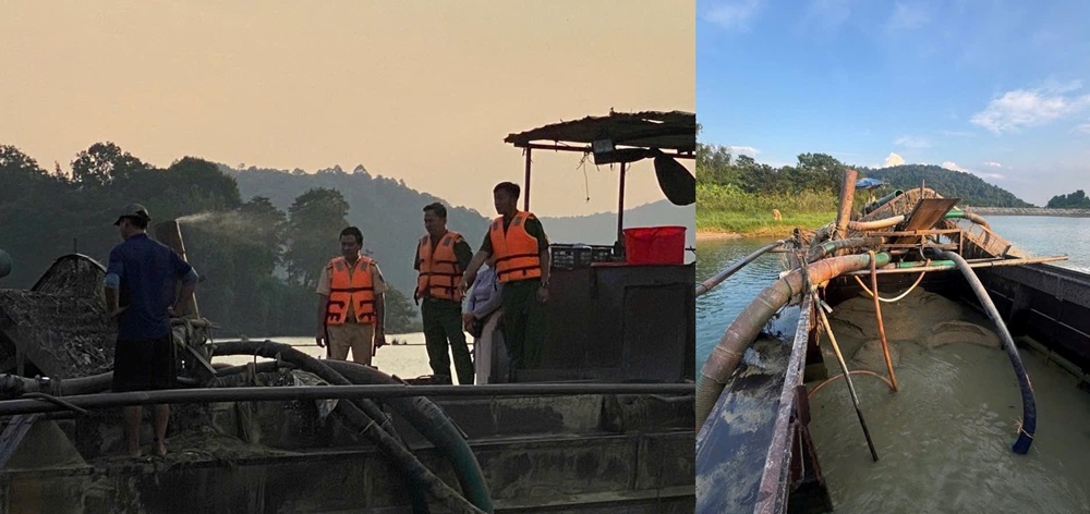 Khoảng 11h30 cùng ngày, Tổ công tác phát hiện một tàu sắt không có biển số đăng ký đang thực hiện hành vi bơm hút cát từ lòng sông lên tàu. Trên phương tiện có 02 trường hợp là Ngô Văn Bảy và ông Phạm Văn Linh cùng thường trú tại thôn Đaguri, xã La Dạ, tỉnh Lâm Đồng đang điều khiển, vận hành thiết bị bơm hút cát gồm 01 giàn máy nổ, thiết bị bơm hút, 01 sàn khung sắt, các ống dây cùng khoảng 03m³ cát đã được hút lên phương tiện. Qua làm việc, các đối tượng khai nhận phương tiện tàu sắt có gắn thiết bị bơm hút cát trên thuộc sở hữu của Lâm Thị Hương thường trú tại thôn Đaguri, xã La Dạ, tỉnh Lâm Đồng. Tại thời điểm kiểm tra, những người liên quan không xuất trình được giấy tờ chứng minh nguồn gốc hợp pháp của hoạt động khai thác cát, cũng như giấy chứng nhận đăng ký, đăng kiểm và giấy chứng nhận an toàn kỹ thuật của phương tiện.