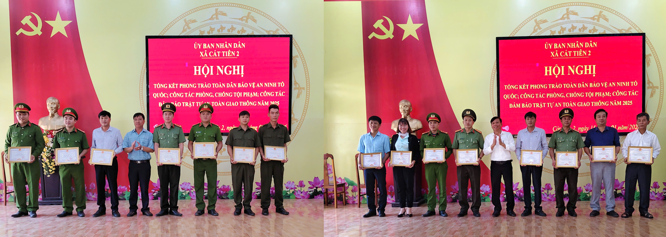 Sáng ngày 15/01/2026, Công an xã Cát Tiên 2 tham mưu UBND xã tổ chức Hội nghị tổng kết phong trào Toàn dân bảo vệ an ninh Tổ quốc, công tác phòng, chống tội phạm và bảo đảm trật tự, an toàn giao thông năm 2025. Hội nghị có sự tham dự của lãnh đạo Đảng ủy, UBND xã, đại diện các cơ quan, ban ngành, đoàn thể, lực lượng Công an và Tổ bảo vệ an ninh, trật tự ở cơ sở. Năm 2025, phong trào Toàn dân bảo vệ an ninh Tổ quốc trên địa bàn xã được duy trì và phát triển cả về chiều rộng lẫn chiều sâu, góp phần giữ vững ổn định an ninh chính trị, trật tự an toàn xã hội, không để phát sinh vụ việc phức tạp. Các ý kiến tham luận tại hội nghị tập trung đề xuất giải pháp nâng cao chất lượng phong trào, đáp ứng yêu cầu nhiệm vụ trong tình hình mới.
