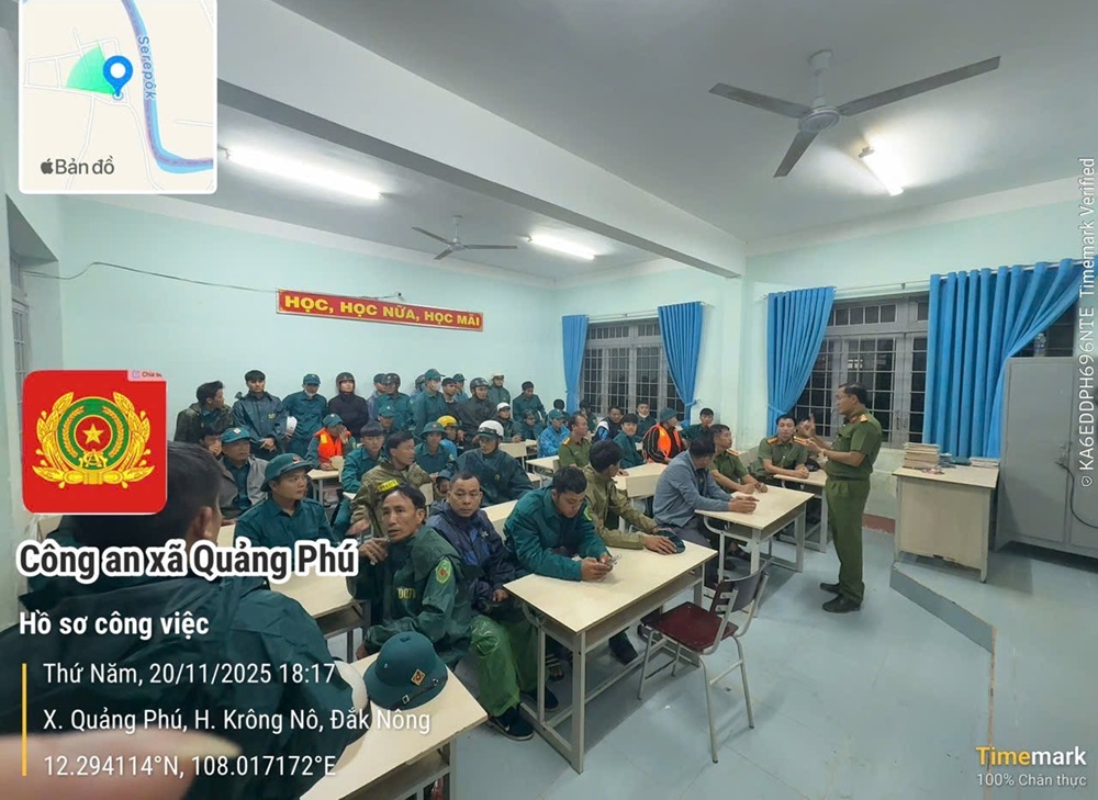 Trong những ngày qua của tháng 11/2025, mưa lớn kéo dài tại khu vực miền Trung – Tây Nguyên, trong đó có xã Quảng Phú, đã khiến lượng nước từ đập thủy điện Buôn Tua Srah dâng cao và phải tăng cường xả lũ. Nhiều khu vực của xã bị ngập cục bộ, ảnh hưởng đến sản xuất và sinh hoạt của Nhân dân. Trước tình hình đó, Công an xã Quảng Phú chủ động triển khai lực lượng, phương tiện, kịp thời hỗ trợ người dân ứng phó và khắc phục hậu quả thiên tai.