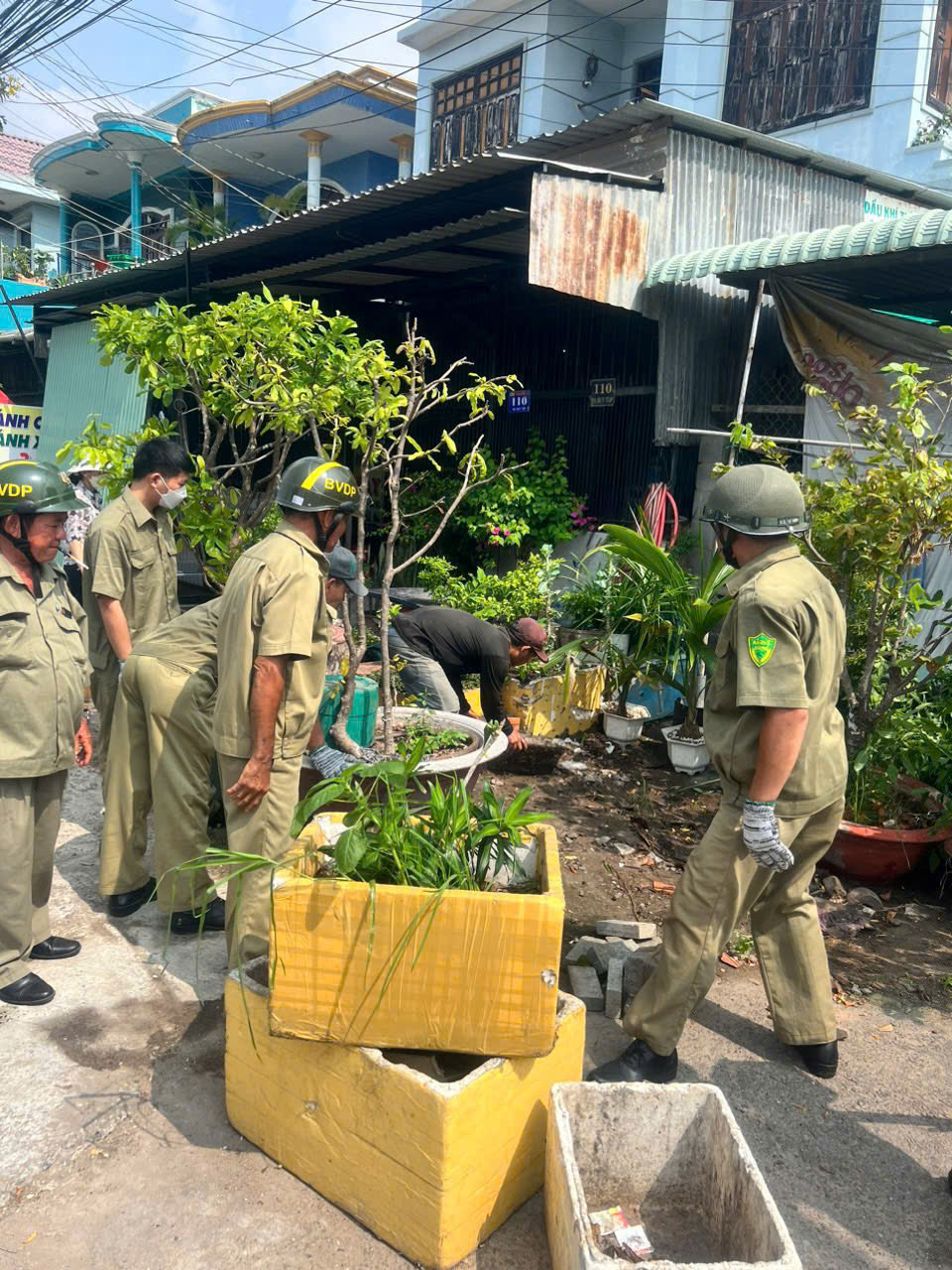 Lực lượng bảo vệ ANTT cơ sở tham gia dọn dẹp vệ sinh môi trường