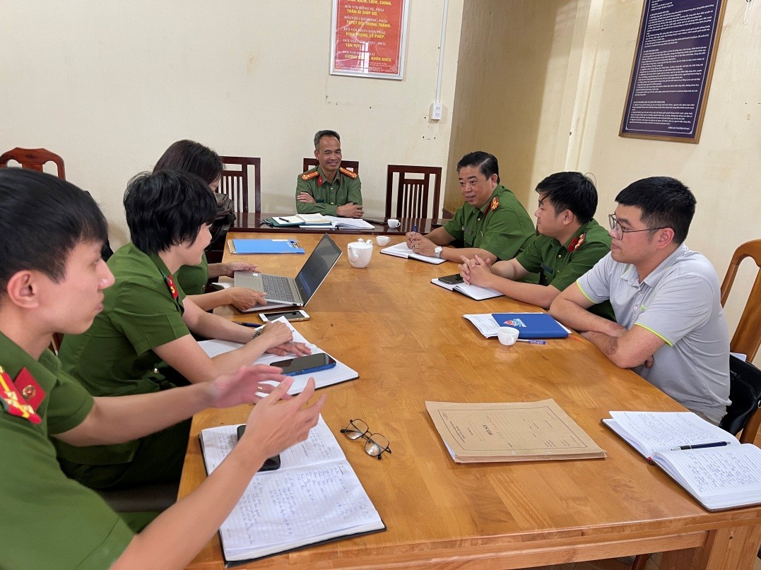Lãnh đạo phòng An ninh đối ngoại và tổ công tác giải đáp khó khăn trong quá trình triển khai công tác hệ An ninh đối ngoại tại cơ sở