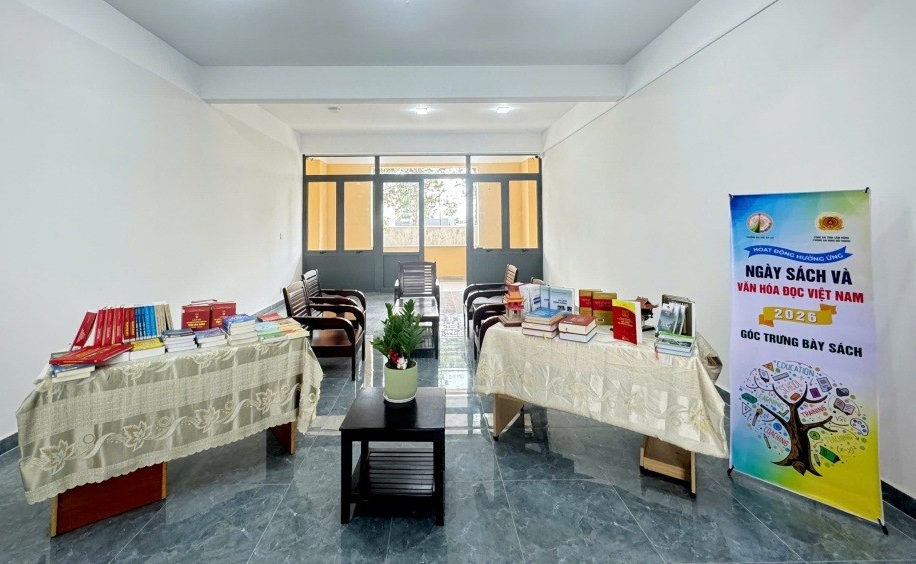 Không gian trưng bày sách tại Trung tâm Thông tin - Thư viện thuộc Trường Đại học Đà Lạt