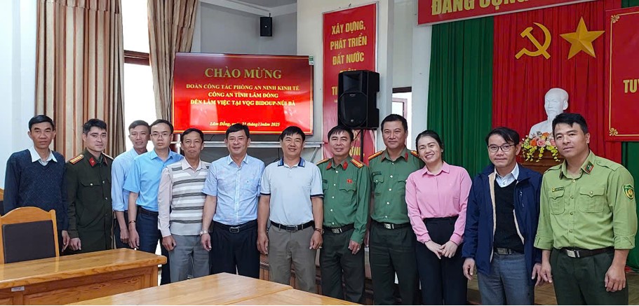Phòng An ninh kinh tế chụp hình lưu niệm với Ban Quản lý Vườn quốc gia Bidoup – Núi Bà sau buổi làm việc