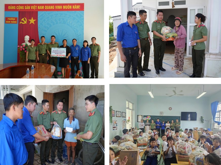 Trước đó, Đảng ủy và lãnh đạo Phòng An ninh kinh tế đã chỉ đạo Đoàn Thanh niên và Hội Phụ nữ phối hợp các mạnh thường quân triển khai chương trình hỗ trợ khẩn cấp cho Nhân dân phường Hàm Thắng với tổng kinh phí khoảng 500 triệu đồng, gồm nhu yếu phẩm, áo phao, đồ dùng học tập và quà tặng thiết thực cho người dân và học sinh chịu ảnh hưởng thiên tai.