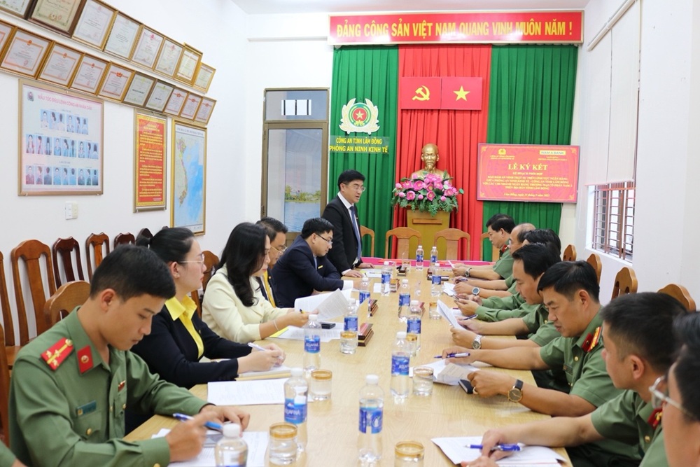 Phát biểu khai mạc buổi Lễ, đồng chí Thượng tá Nguyễn Minh Tuyên – Trưởng Phòng An ninh kinh tế nhấn mạnh: trong bối cảnh hoạt động ngân hàng phát triển nhanh chóng, đặc biệt là xu thế số hóa và thanh toán trực tuyến, nguy cơ tội phạm công nghệ cao, gian lận tài chính, nợ xấu và các thủ đoạn lợi dụng ngân hàng để vi phạm pháp luật ngày càng tinh vi, phức tạp. Do đó, việc ký kết kế hoạch phối hợp là yêu cầu cấp thiết, góp phần nâng cao hiệu quả phòng ngừa, phát hiện, đấu tranh và xử lý kịp thời các vụ việc liên quan đến an ninh ngân hàng, bảo vệ an toàn hệ thống tài chính và quyền lợi khách hàng trên địa bàn toàn tỉnh.