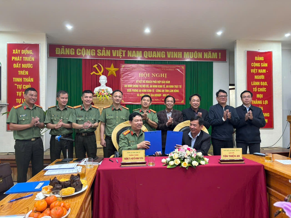 Tham dự Hội nghị có đồng chí Thượng tá Nguyễn Minh Tuyên – Trưởng phòng An ninh Kinh tế và ông Tôn Thiện An – Giám đốc Vườn quốc gia Bidoup – Núi Bà, cùng đại diện lãnh đạo, cán bộ hai đơn vị.