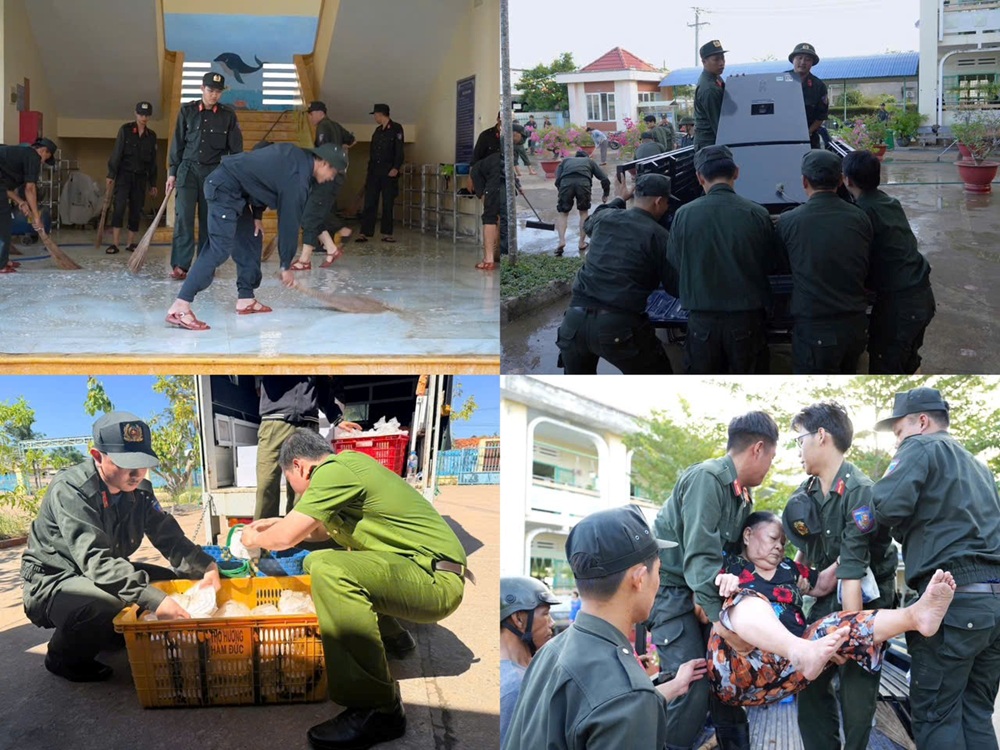 Thực hiện chỉ đạo của Lãnh đạo Công an tỉnh, Phòng Cảnh sát cơ động đã huy động hàng trăm lượt cán bộ, chiến sĩ phối hợp với chính quyền các địa phương bị thiệt hại do mưa lũ. Từ cao nguyên như xã Nam Đà, xã Đ’Ran đến vùng đồng bằng như xã Hàm Liêm, Hàm Thuận… ở đâu có khó khăn, ở đó có hình ảnh người chiến sĩ Cảnh sát cơ động.