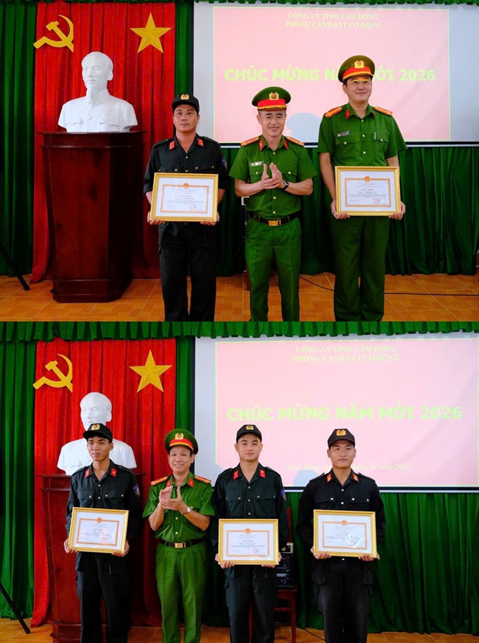 Nhân dịp này, thừa ủy quyền Giám đốc Công an tỉnh, đoàn công tác đã trao giấy khen cho các cá nhân có thành tích xuất sắc trong chiến dịch “Quang Trung thần tốc” tại Tổ Cảnh sát cơ động Khu vực II – nhằm kịp thời động viên, lan tỏa khí thế thi đua chào mừng thành công Đại hội Đảng toàn quốc lần thứ XIV.