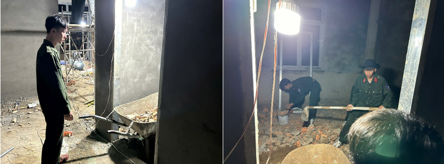 Giữa công trường, Trung tá Nguyễn Nghĩa Bình, cán bộ Phòng CSCĐ, cùng đồng đội miệt mài lao động, sẵn sàng làm việc xuyên đêm dưới ánh đèn tạm bợ để kịp tiến độ đề ra. Dù phải gác lại việc riêng, các CBCS vẫn quyết tâm hoàn thành nhiệm vụ với tinh thần trách nhiệm cao nhất.