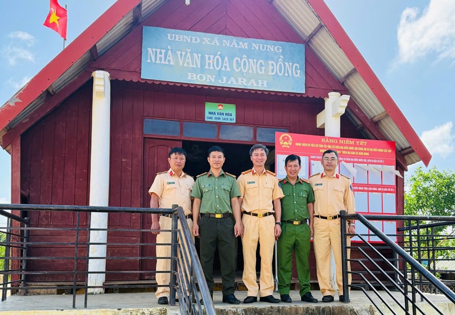 Đoàn công tác do Thượng tá Trần Bảo Thành – Phó Trưởng phòng Cảnh sát giao thông làm trưởng đoàn kiểm tra công tác bầu cử tại xã Nam Nung