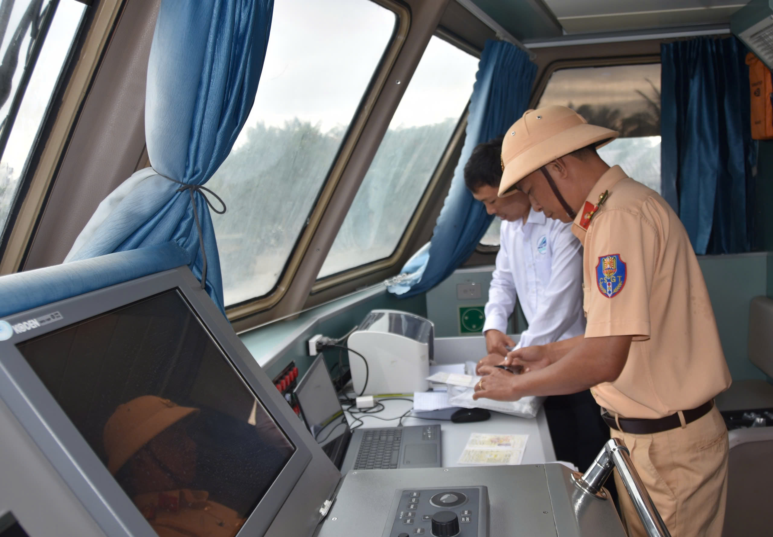 Lực lượng Cảnh sát giao thông tiến hành đo nồng độ cồn các thuyền viên
