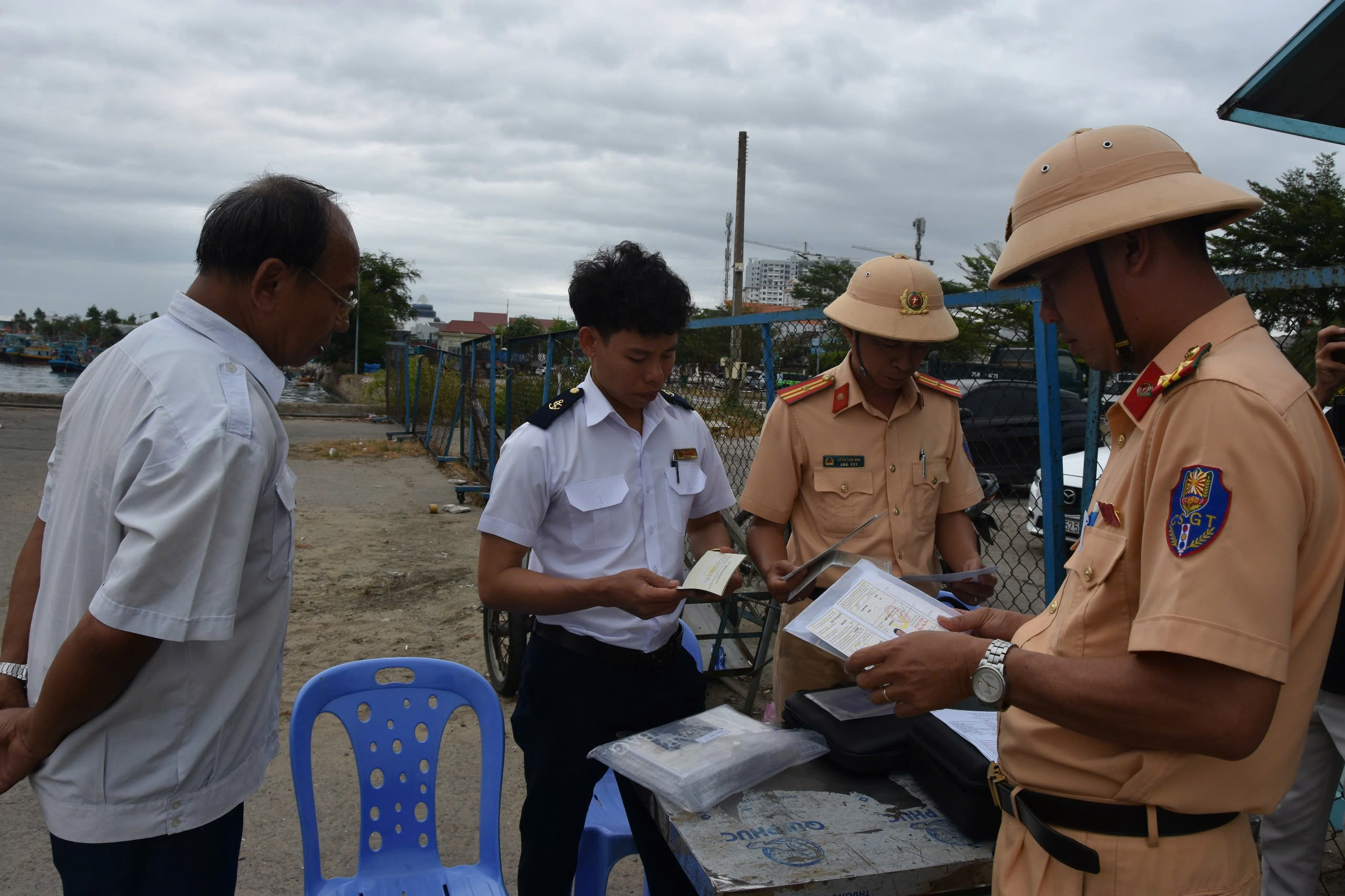 Lực lượng Cảnh sát giao thông và Cảng vụ Hàng Hải Bình Thuận đang kiểm tra