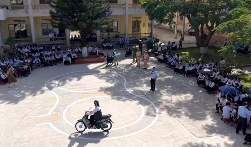 Các buổi tuyên truyền được tổ chức sinh động với nhiều hình thức: chiếu hình ảnh minh họa, mô phỏng tai nạn, hỏi – đáp tương tác, thực hành xử lý tình huống, kỹ năng phanh khẩn cấp, quan sát điểm mù… Qua đó giúp học sinh dễ tiếp thu, ghi nhớ và áp dụng vào thực tế.