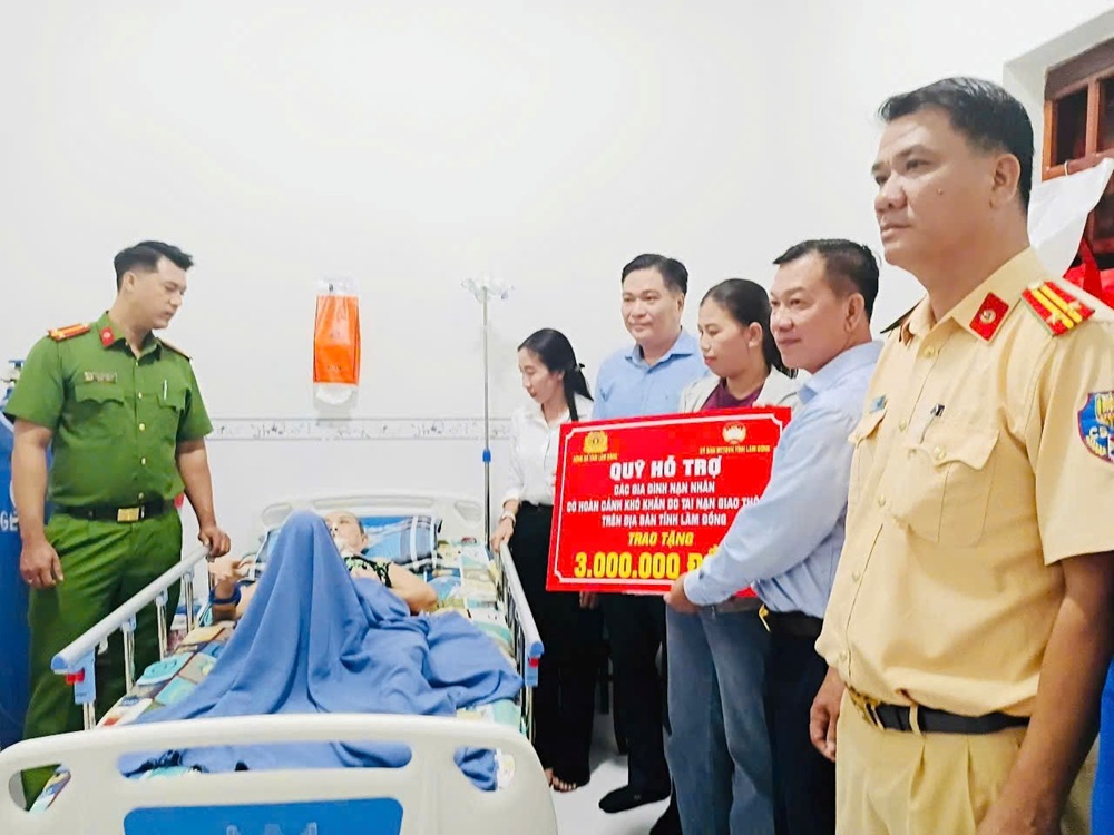 Đoàn công tác đã trao tặng mỗi hộ gia đình một phần quà cùng tiền mặt trị giá 3,5 triệu đồng, với tổng kinh phí 52,5 triệu đồng được trích từ Quỹ hỗ trợ các nạn nhân tai nạn giao thông. Các phần quà không chỉ mang giá trị vật chất mà còn thể hiện sự quan tâm, chia sẻ và trách nhiệm của cộng đồng, đặc biệt là các doanh nghiệp vận tải, các cơ quan ban ngành và lực lượng công an đối với các gia đình chịu thiệt hại do tai nạn giao thông.