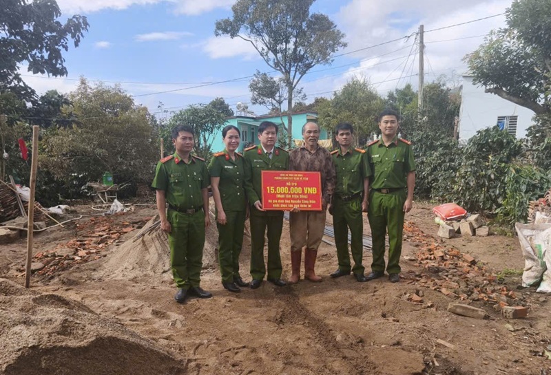 Thay mặt tập thể lãnh đạo, cán bộ, chiến sĩ Phòng Cảnh sát QLHC về TTXH – Công an tỉnh, Thượng tá Lê Thanh Sơn đã trao tặng phần quà hỗ trợ trị giá 15 triệu đồng cho đại diện gia đình; đồng thời phân công cán bộ, chiến sĩ và đoàn viên thanh niên tham gia hỗ trợ gia đình trong suốt quá trình xây dựng nhà ở cho đến khi hoàn thiện.