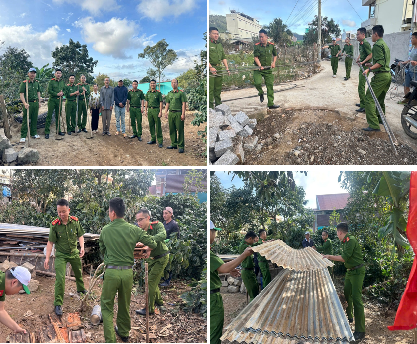 Ngay sau lễ khởi công, với tinh thần xung kích, trách nhiệm “vì Nhân dân phục vụ”, cán bộ, chiến sĩ và đoàn viên thanh niên Phòng Cảnh sát QLHC về TTXH đã phát huy vai trò nòng cốt, chủ động phối hợp chặt chẽ với Công an xã D’Ran và gia đình ông Nguyễn Công Hiền trực tiếp tham gia các phần việc xây dựng nhà ở. Lực lượng tham gia không quản ngại khó khăn, tranh thủ thời gian, tích cực lao động, hỗ trợ ngày công, góp phần đẩy nhanh tiến độ thi công.