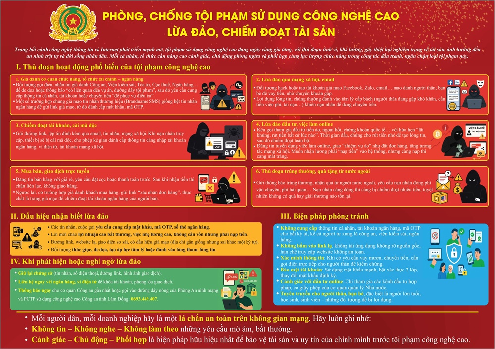 • Cảnh giác – Chủ động – Phối hợp là biện pháp hữu hiệu nhất để bảo vệ tài sản và uy tín của chính mình trước tội phạm công nghệ cao.