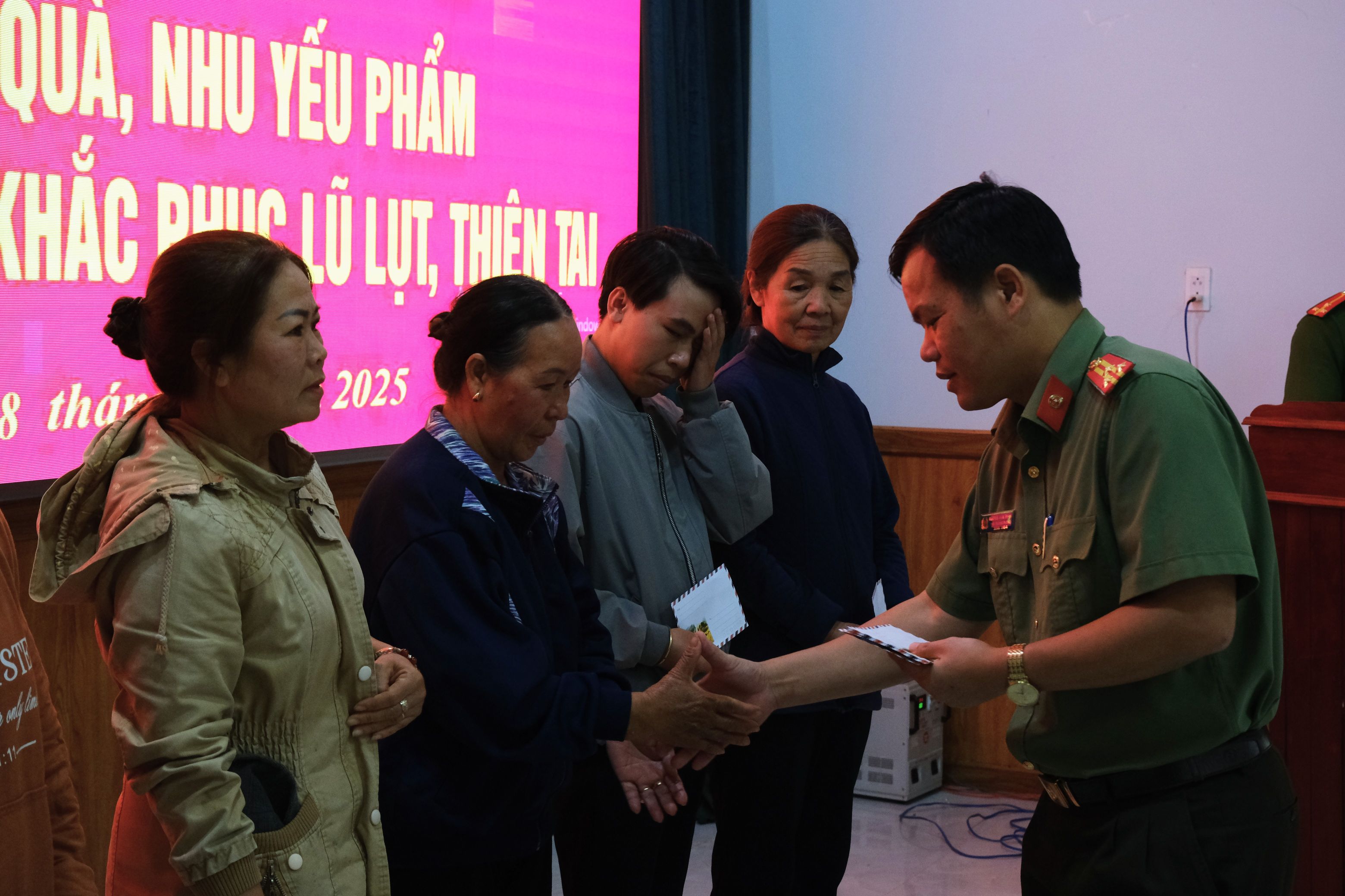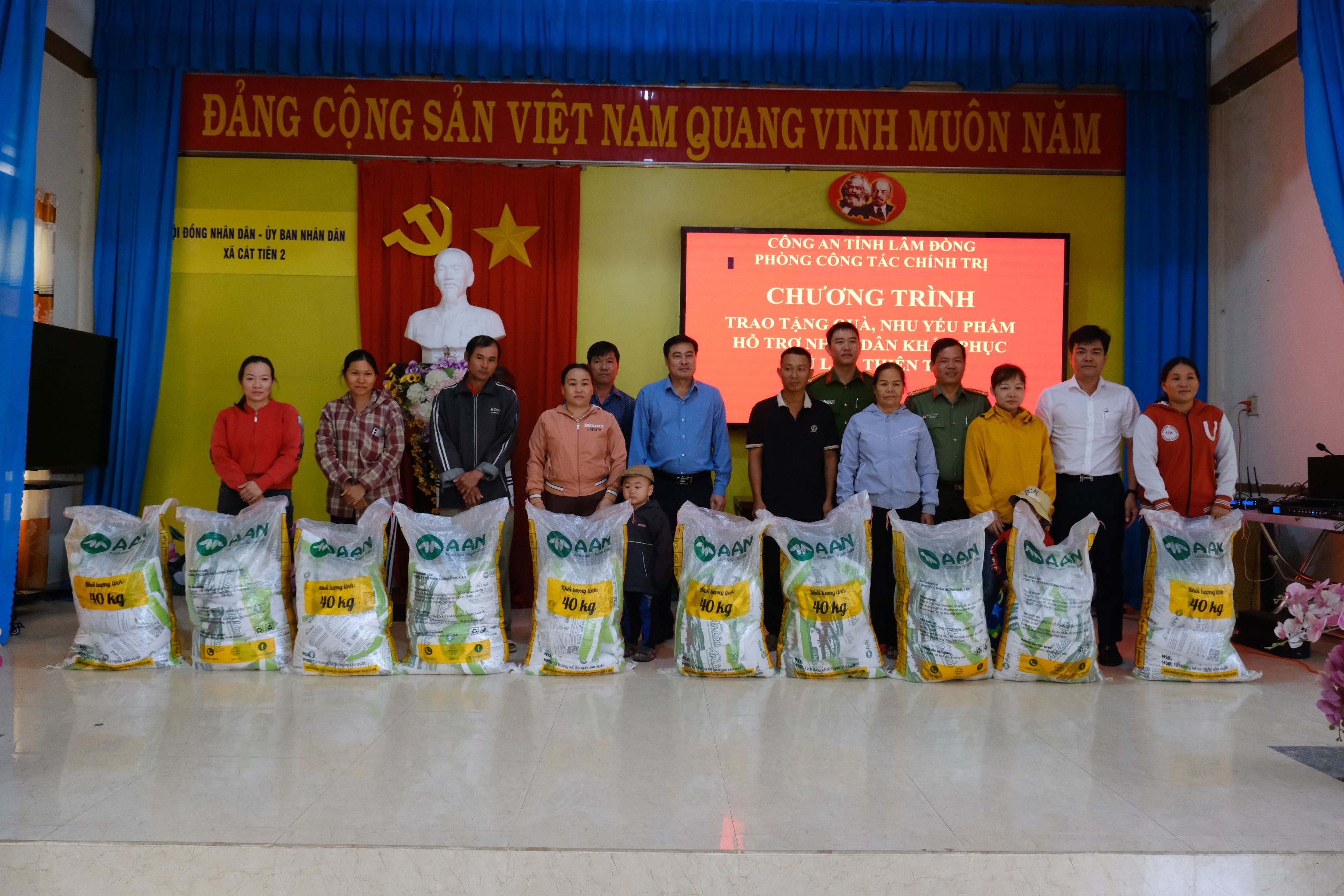 Theo đó, Phòng Công tác chính trị Công an tỉnh đã trực tiếp thăm hỏi và trao các phần quà do Bộ Công an và các mạnh thường quân hỗ trợ tại các xã bị thiệt hại nặng nề do lũ lụt gồm: Cát Tiên 2, Ninh Gia, Tà Năng, Hiệp Thạnh, Ka Đô, Quảng Lập, D'ran và Nam Đà.