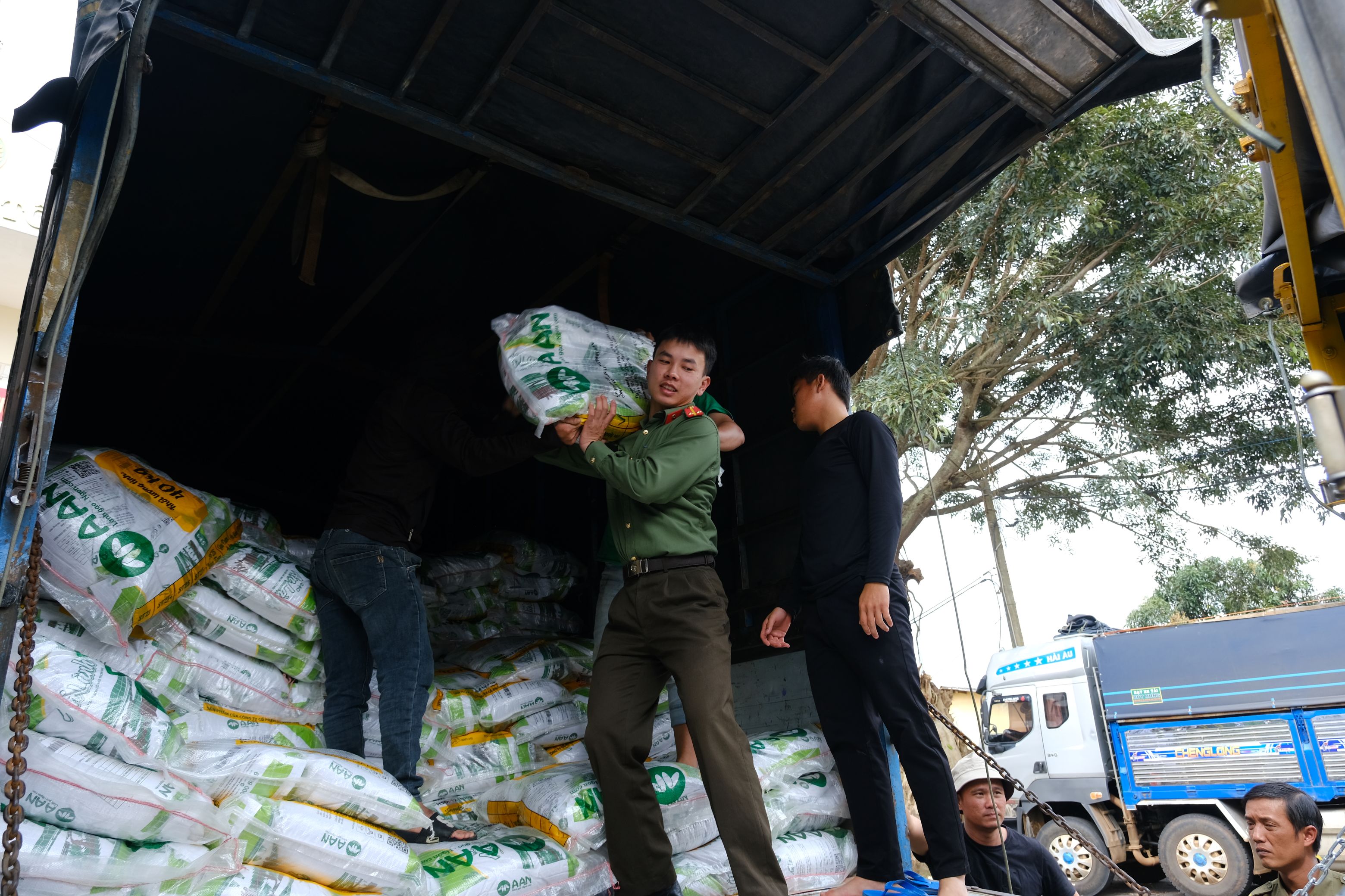 Phòng Công tác chính trị phối hợp với các mạnh thường quân trao 30 tấn gạo hỗ trợ người dân các xã bị ảnh hưởng bởi mưa lũ