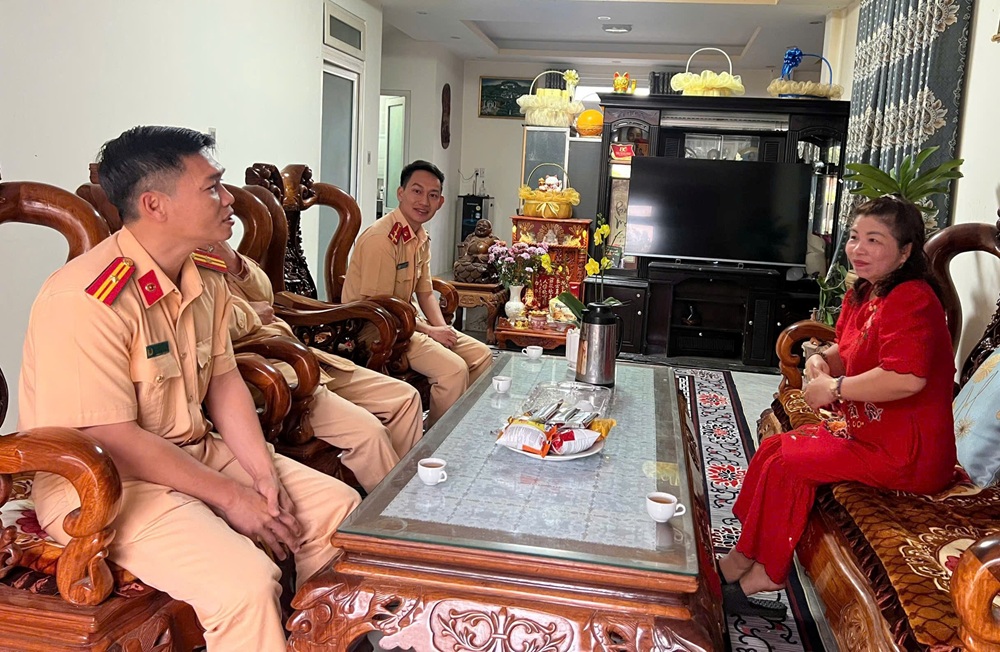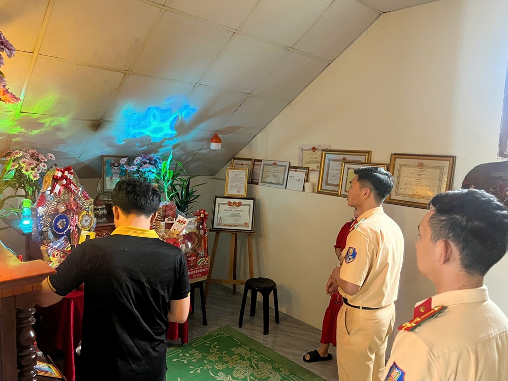 Tại các gia đình, lãnh đạo Phòng CSGT đã ân cần thăm hỏi sức khỏe, đời sống thân nhân các liệt sĩ. Đoàn công tác đã thắp nén hương bày tỏ lòng biết ơn sâu sắc trước sự hy sinh to lớn của các đồng chí vì sự bình yên, an toàn của Nhân dân; đồng thời trao tặng những phần quà ý nghĩa, thể hiện tình cảm, trách nhiệm và sự tri ân của tập thể cán bộ, chiến sĩ đơn vị đối với gia đình các liệt sĩ.