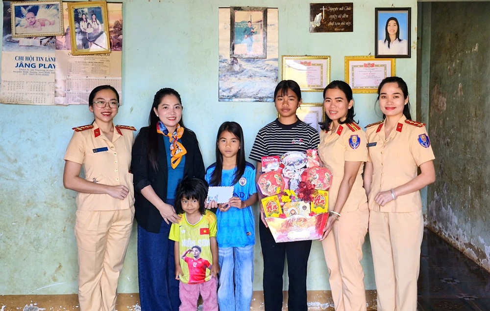 Hội phụ nữ Phòng CSGT Lâm Đồng thăm hỏi tặng quà tết 02 con đỡ đầu tại xã Trường Xuân, tỉnh Lâm Đồng