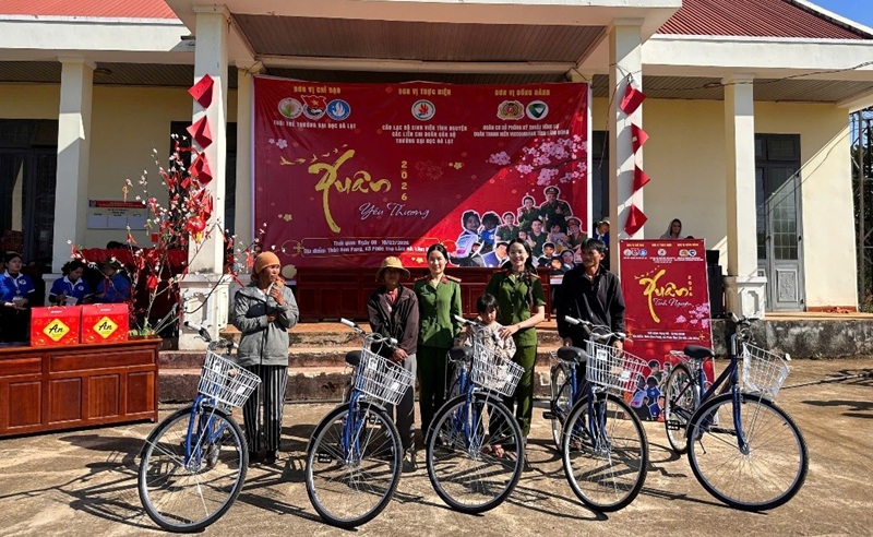 Song song đó, đơn vị tiếp tục tuyên truyền pháp luật về phòng, chống pháo, pháo nổ; trao tặng 50 phần quà cho các hộ gia đình khó khăn, 20 phần quà cho các em học sinh người đồng bào dân tộc K’Ho, 15 xe đạp cho các em học sinh có hoàn cảnh đặc biệt khó khăn, hiếu học; tổ chức gian hàng 0 đồng, khu trò chơi và tặng quần áo Tết cho người dân.