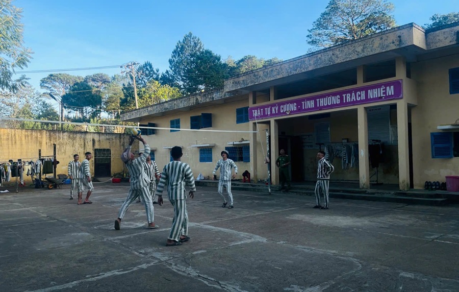 Phạm nhân đánh bóng chuyền trong ngày nghỉ