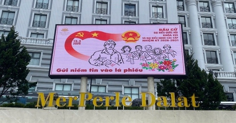 Khách sạn MerPerle Dalat (số 01 Hùng Vương, phường Xuân Hương - Đà Lạt) là một trong những cơ sở tiên phong, tích cực tham gia công tác tuyên truyền cuộc bầu cử đại biểu Quốc hội khóa XVI và Hội đồng nhân dân các cấp nhiệm kỳ 2026 - 2031