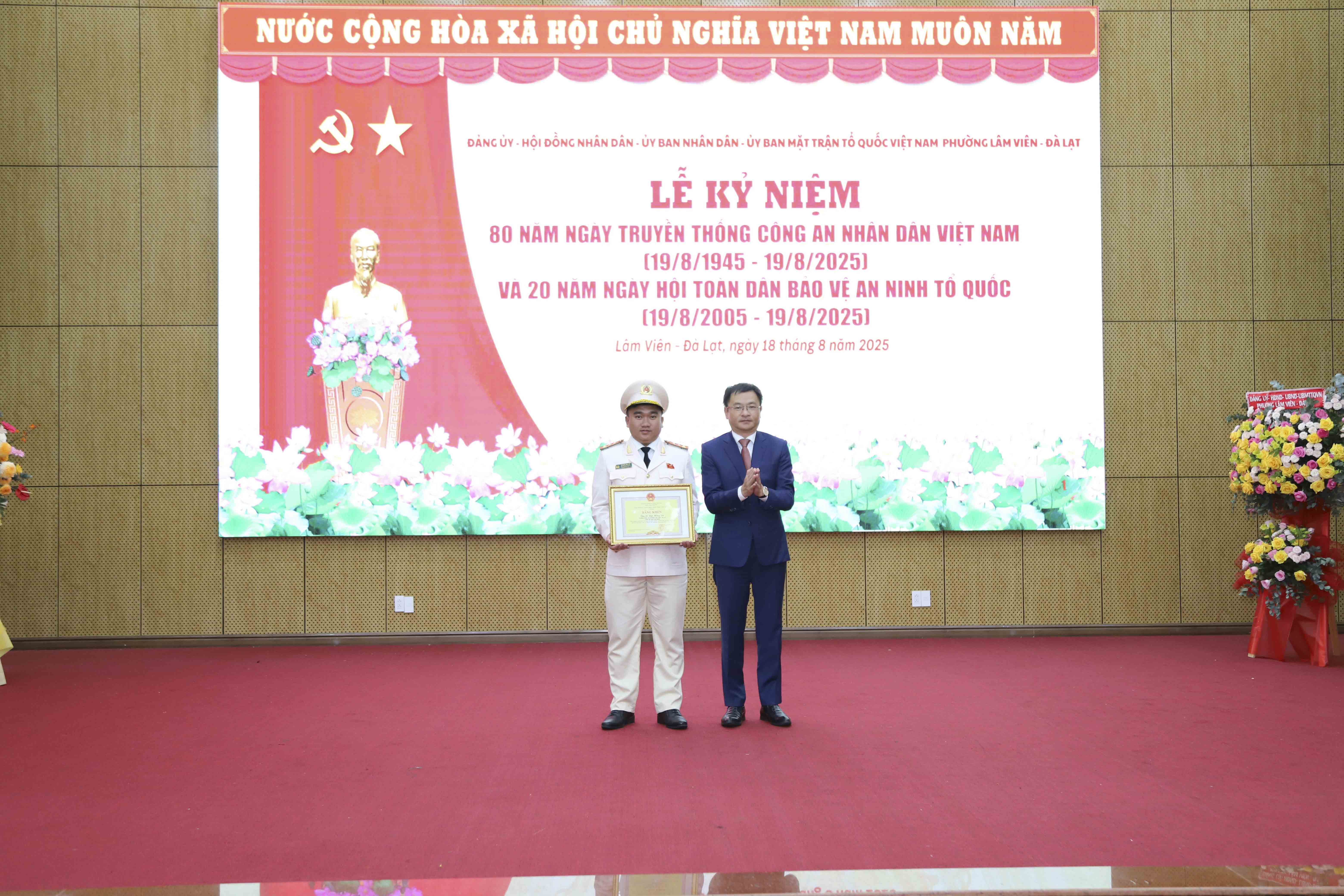 Phát biểu tại buổi lễ, đồng chí Đặng Quang Tú – Bí thư Đảng ủy, Chủ tịch HĐND phường, khẳng định: Trong sự trưởng thành của lực lượng Công an nhân dân có những đóng góp lặng lẽ nhưng to lớn của các thế hệ cán bộ, chiến sĩ Công an phường. Dù trong bất kỳ hoàn cảnh nào, họ luôn giữ vững bản lĩnh, tận tụy phục vụ nhân dân, giữ gìn sự bình yên của từng khu phố, từng gia đình. Ngay sau khi thực hiện mô hình chính quyền hai cấp, Công an phường Lâm Viên đã nhanh chóng ổn định tổ chức, bảo đảm tuyệt đối an toàn cho Đại hội Đảng bộ phường lần thứ I, đồng thời kéo giảm rõ rệt tội phạm trật tự xã hội, tạo sự yên tâm cho người dân.