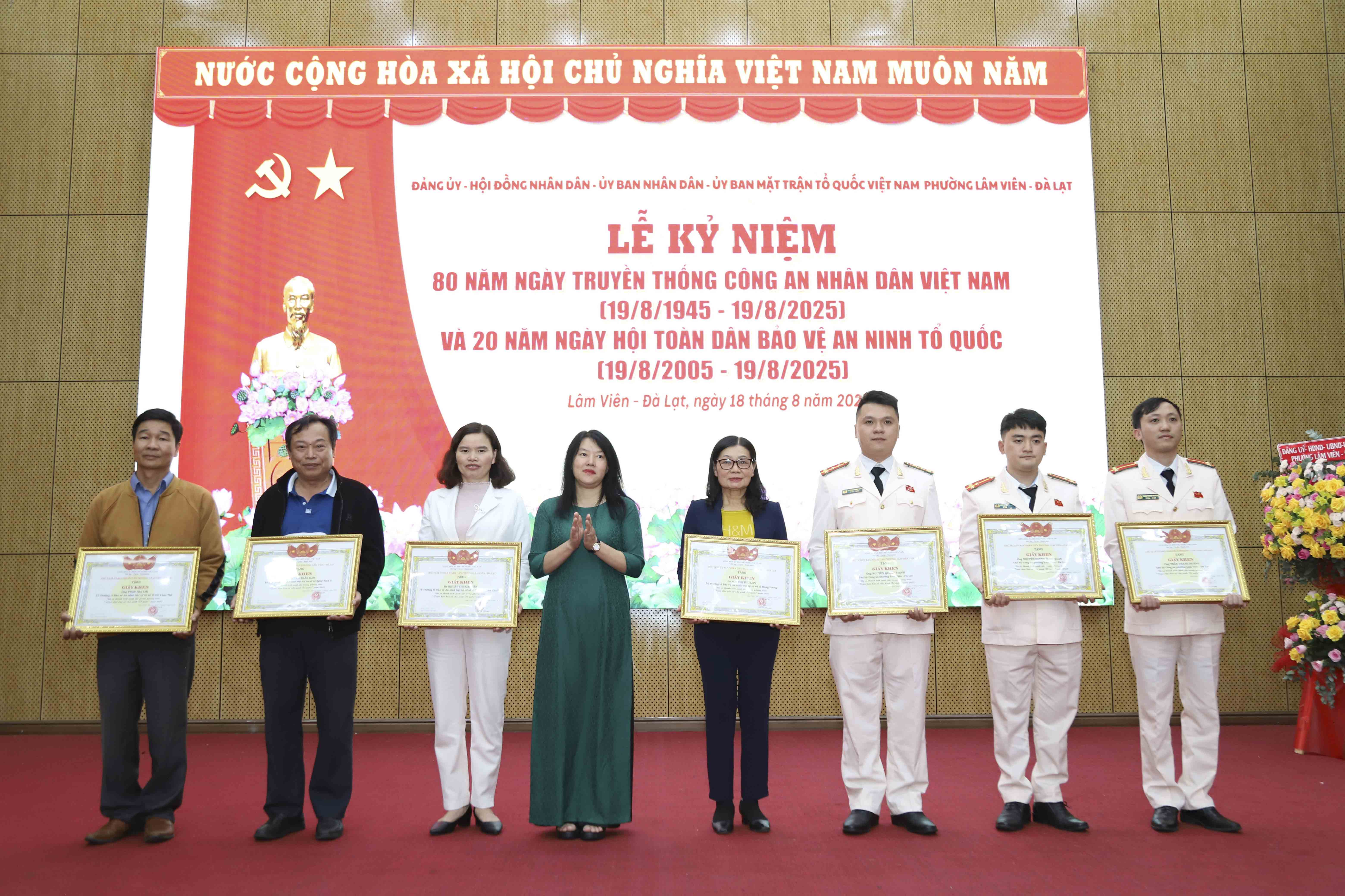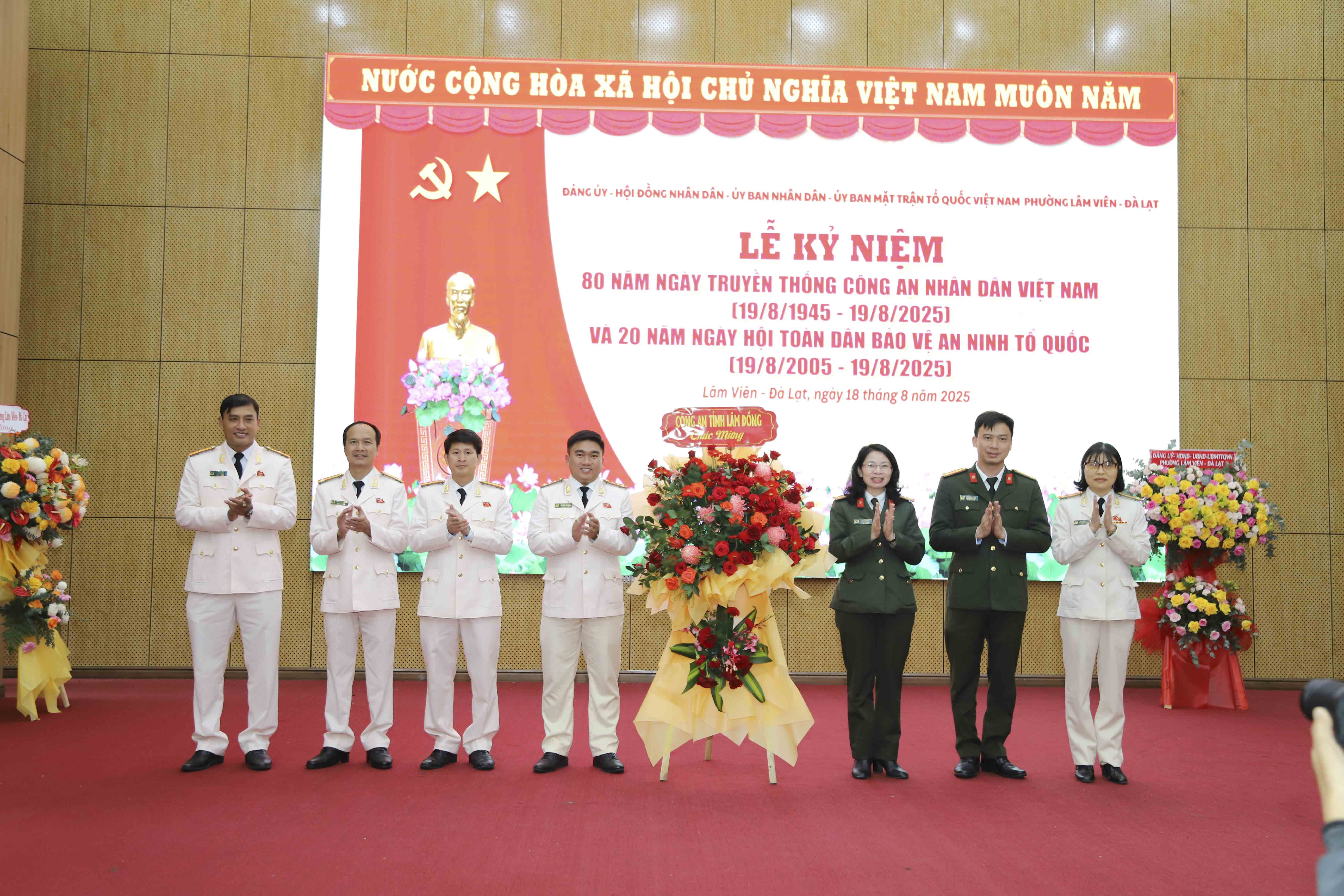 Tại buổi lễ thay mặt lãnh đạo phường Lâm Viên – Đà Lạt, đồng chí Trần Thị Vũ Loan, Phó Bí thư, Chủ tịch UBND phường đã đọc diễn văn ôn lại truyền thống chặng đường 80 năm vẻ vang của lực lượng Công an nhân dân: Từ buổi đầu cách mạng với các đội tự vệ đỏ, cho đến những ngày đầu thành lập chính quyền non trẻ, rồi hai cuộc kháng chiến trường kỳ chống thực dân Pháp, đế quốc Mỹ, và cả những năm tháng cam go chống lại âm mưu phá hoại, “diễn biến hoà bình” của các thế lực thù địch. Mỗi giai đoạn lịch sử đều in đậm dấu ấn của sự hy sinh, của lòng quả cảm và sự trung thành tuyệt đối với Đảng, Tổ quốc và nhân dân.