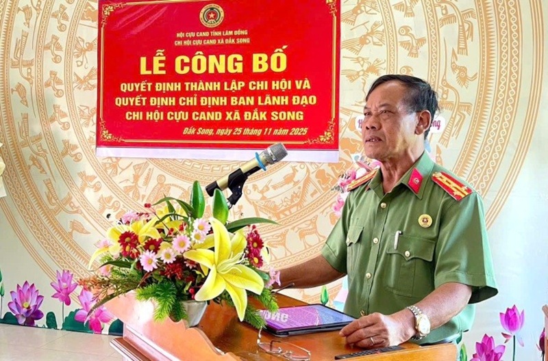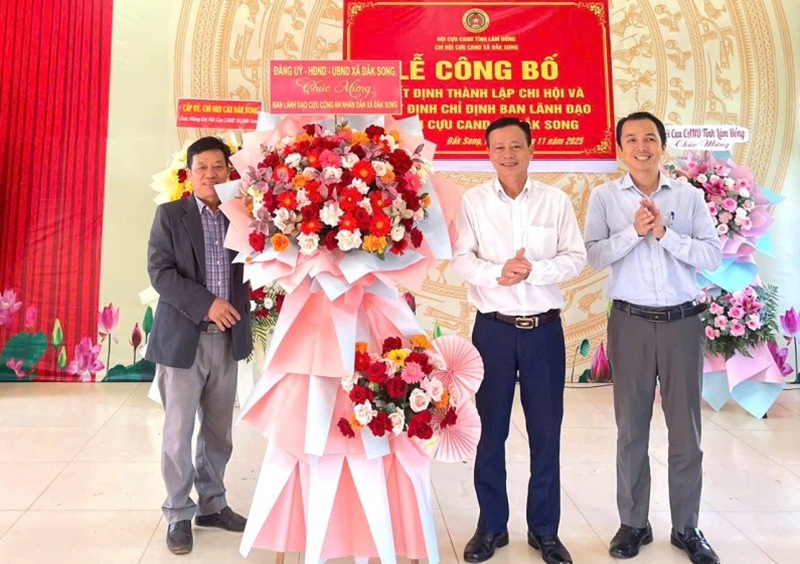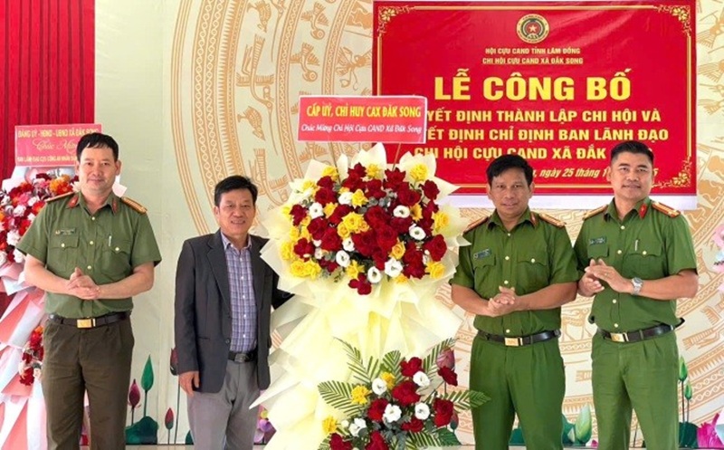 Tại buổi lễ, lãnh đạo Hội Cựu CAND tỉnh Lâm Đồng đã công bố và trao Quyết định thành lập Chi hội, Quyết định chỉ định Chi hội trưởng, Chi hội phó Chi hội Cựu CAND xã Đắk Song gồm 01 đồng chí Chi hội trưởng và 02 đồng chí Chi hội phó.