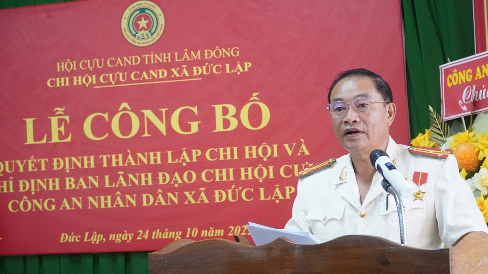 Phát biểu tại buổi lễ, đồng chí Đại tá Nguyễn Tường Thuật – Ủy viên Ban Thường vụ Hội Cựu Công an nhân dân tỉnh Lâm Đồng nhấn mạnh: “Đây là sự kiện có ý nghĩa đặc biệt, đánh dấu bước phát triển mới trong công tác tổ chức Hội Cựu Công an nhân dân, đồng thời thể hiện sự tri ân, quan tâm của Đảng ủy, lãnh đạo Công an các cấp và chính quyền địa phương đối với đội ngũ cán bộ Công an đã nghỉ hưu”.