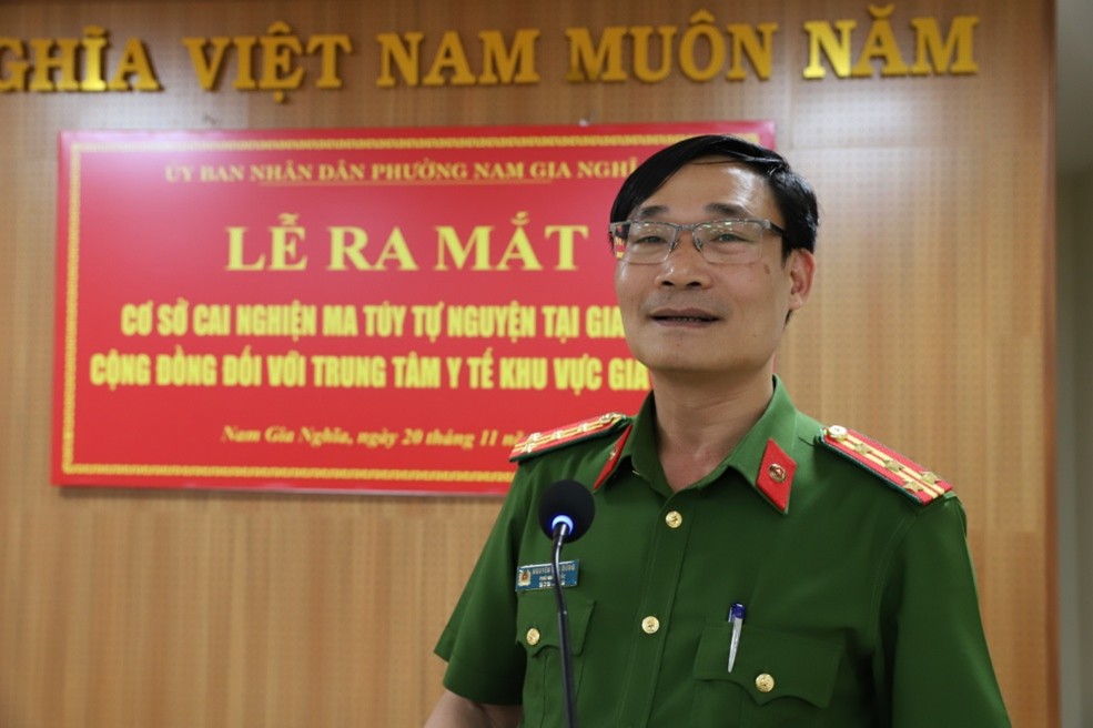 Tại buổi Lễ, đồng chí Đại tá Nguyễn Văn Dũng, Phó Giám đốc Công an tỉnh biểu dương sự nỗ lực, cố gắng của chính quyền địa phương và Công an phường Nam Gia Nghĩa trong triển khai công tác cai nghiện ma túy, tại gia đình, cộng đồng. Đồng thời nhấn mạnh, thời gian tới Công an phường Nam Gia Nghĩa tiếp tục làm tốt công tác tham mưu cho cấp ủy, chính quyền địa phương trong việc quản lý người nghiện, người sử dụng trái phép chất ma túy trên địa bàn; tăng cường các biện pháp phòng ngừa, đấu tranh, ngăn chặn tệ nạn ma túy góp phần bảo đảm tốt tình hình ANTT, xây dựng xã hội khỏe mạnh, văn minh, phát triển kinh tế - xã hội của địa phương.